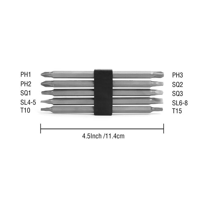 • Набор двухсторонних длинных бит 11см. из шт: SL4-5/SL6-8; PH1/PH3; PH2/SQ2; SQ1/SQ3; T10/T15
