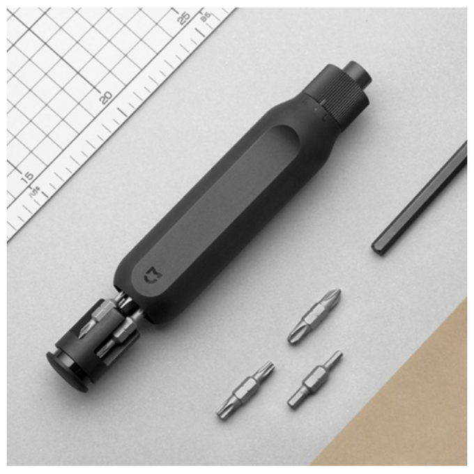 Все биты отвертки Xiaomi выполнены из высококачественной стали S2 и закалены до твердости в 60 HRC. 8 бит с двумя шлицами дают сразу 16 инструментов для любой работы, а удлинитель длиной 110 мм поможет найти подход даже к глубоко посаженному крепежу. Ручка отвертки отличается особым сечением с плоской гранью, благодаря которому она удобно лежит в руке, не проскальзывая и эффективно передавая крутящий момент. Кроме того, отвертку с такой ручкой можно положить на наклонную поверхность, с которой она не сможет укатиться. Ручка отвертки усилена особым композитом из нейлона и стекловолокна, а снаружи она покрыта мягким слоем ТПЭ.