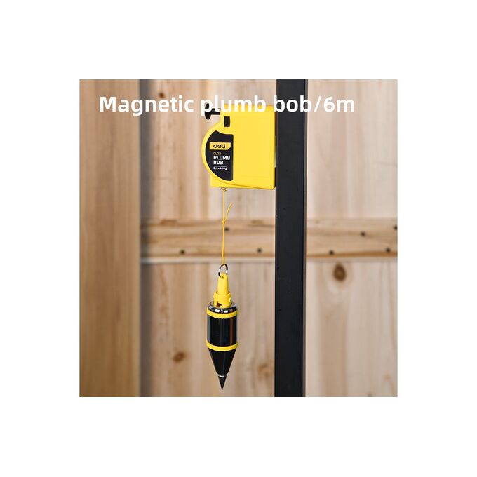 Отвес Deli DL22 конусный с магнитным держателем вес 400гр, длина нити 6м, автоматическое втягивание