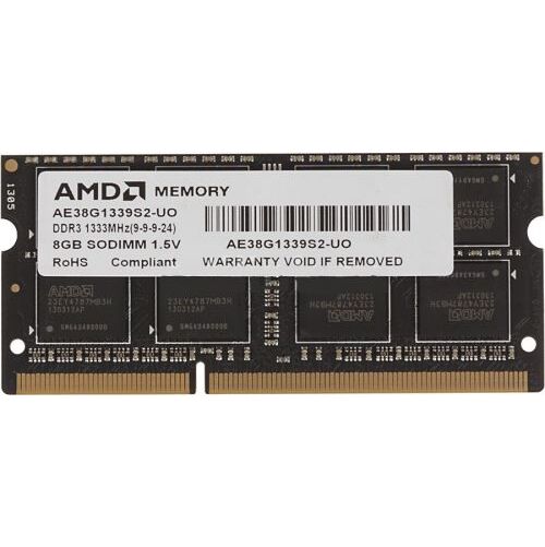 ОЗУ AMD 8GB Radeon DDR3 1333 SO DIMM R338G1339S2S-UO Non-ECC, CL9, 1.5V, Black, Bulk
