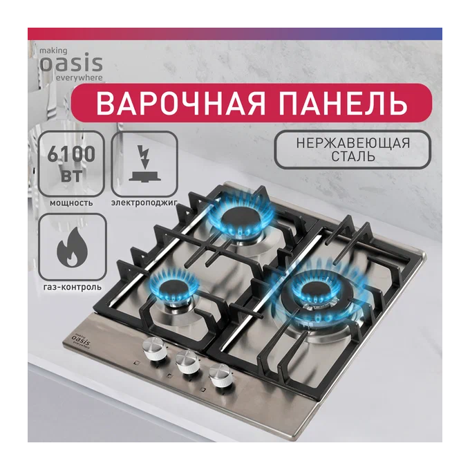 Панель варочная OASIS P-3SBM (4640130973988) сталь нержавеющая