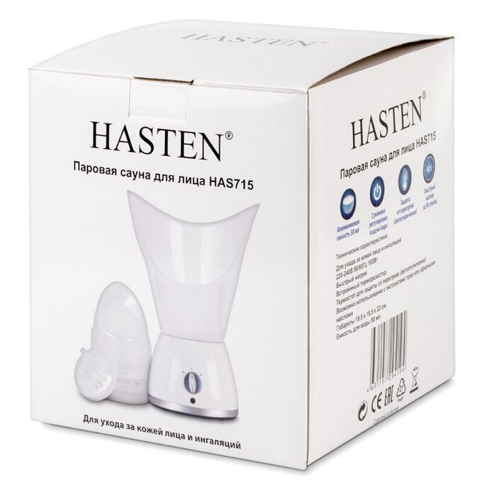 Паровая сауна для лица HAS715 (Косметический аппарат для лица, паровой ингалятор, вапоризатор) - поможет вам не только очистить кожу лица, подготовит её к проведению косметических процедур, но и провести ингаляцию (профилактика простудных заболеваний) добавив травяные сборы в специальный контейнер. В паровой сауне HAS715 пар используется для открытия пор и после глубокой очистки оставляет вашу кожу мягкой, увлажненной, и чистой. Паровая сауна HAS715 станет вашим незаменимым помощником!