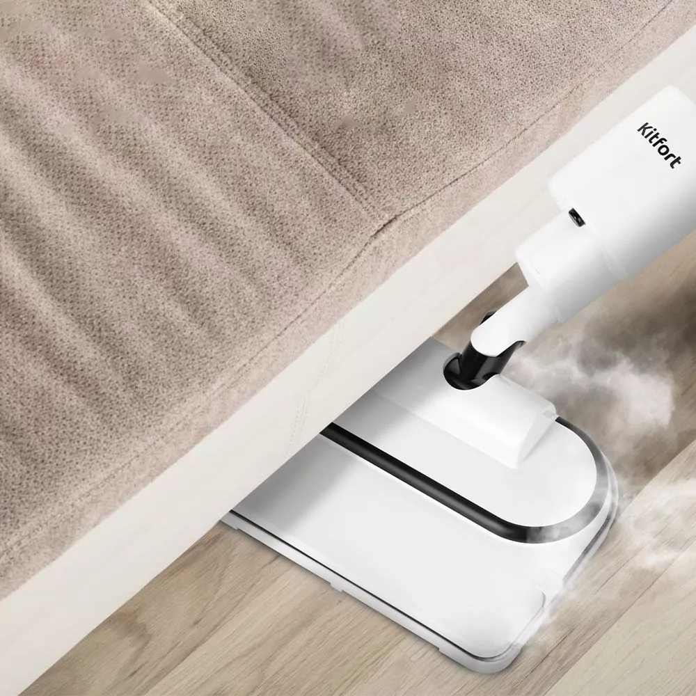 Уборка с паровой шваброй КТ-1062 будет проходить быстро и легко. Для неё не нужны чистящие средства, поэтому она станет идеальным решением уборки для аллергиков. В комплекте есть рамка для ковра, которая обеспечивает легкое скольжение щётки по ковру.