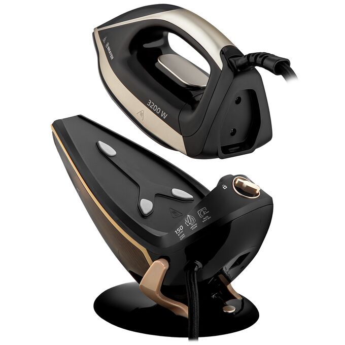 Двуслойное керамическое покрытие подошвы равномерно распределяет тепло, предотвращая повреждение ткани и обеспечивая гладкое скольжение. Постоянная подача пара в 150 г/мин позволяет легко разглаживать даже самые сложные складки.