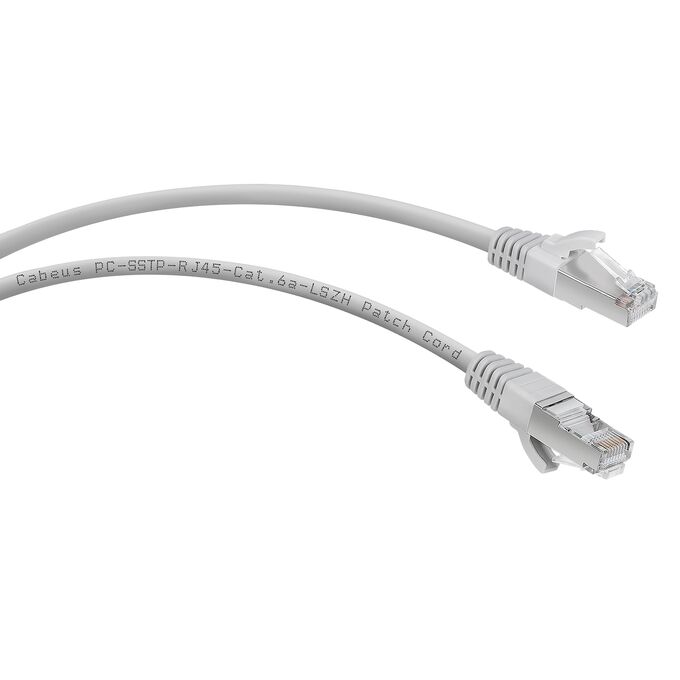 Патч-корд Cabeus (PC-SSTP-RJ45-Cat.6a-1m-LSZH) S/FTP, категория 6а (10G), 2xRJ45/8p8c, экранированный, серый, LSZH, 1м