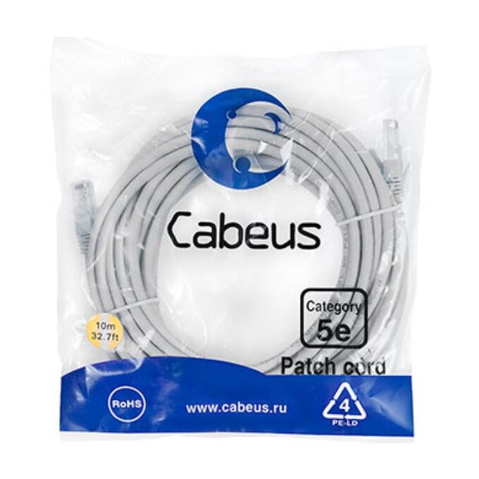 Патч-корд Cabeus (PC-UTP-RJ45-Cat.5e-10m) U/UTP, категория 5е, 2xRJ45/8p8c, неэкранированный, серый, PVC, 10м