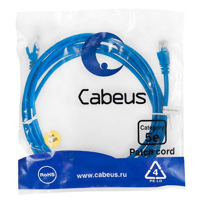 Патч-корд Cabeus PC-UTP-RJ45-Cat.5e-3m-BL-LSZH неэкранированный, синий