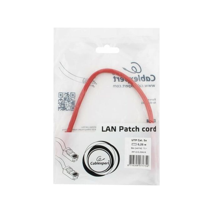 Патч-корд Cablexpert PP12-0.25M/R красный