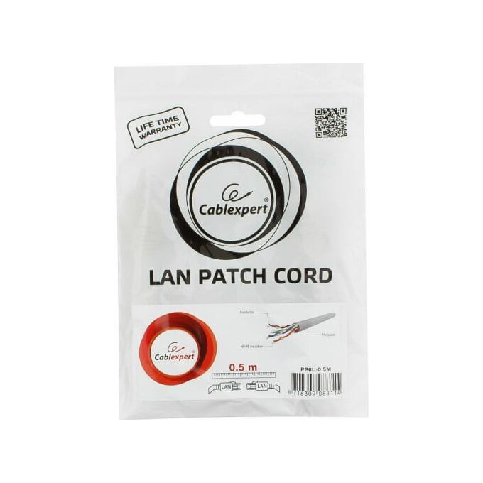 Технические характеристики Cablexpert UTP PP6U-0.5M кат. 6, 0.5 м, серый
