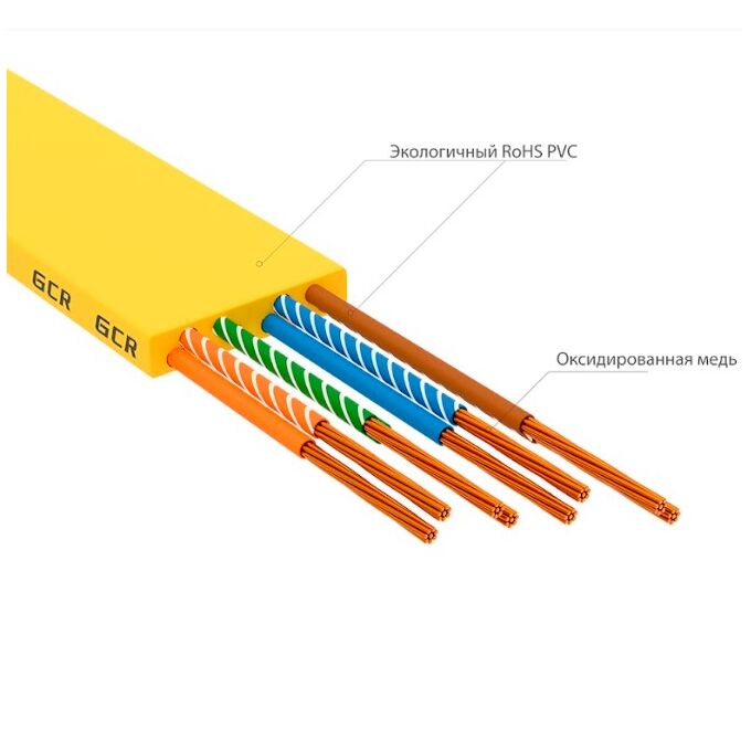 Патч-корд Greenconnect Prof GCR-52827 плоский прямой 2.0m, UTP медь RJ45, кат.6, желтый