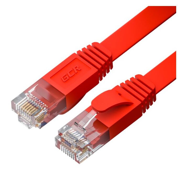 Патч-корд Greenconnect Prof GCR-52851 плоский прямой 10.0m, UTP медь RJ45, кат.6, красный