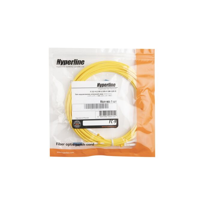 Патч-корд HYPERLINE FC-D2-9-LC/UR-LC/UR-H-10M-LSZH-YL волоконно-оптический SM 9/125 (OS2), LC/UPC-LC/UPC, 2.0мм, duplex, LSZH, 10м (004154)