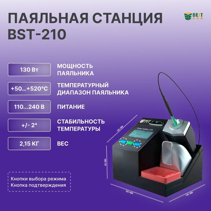 Интеллектуальный дизайн: BST-210 имеет интеллектуальный дизайн, который обеспечивает стабильную и стабильную работу, что делает его идеальным для деликатных электронных компонентов и точных работ.