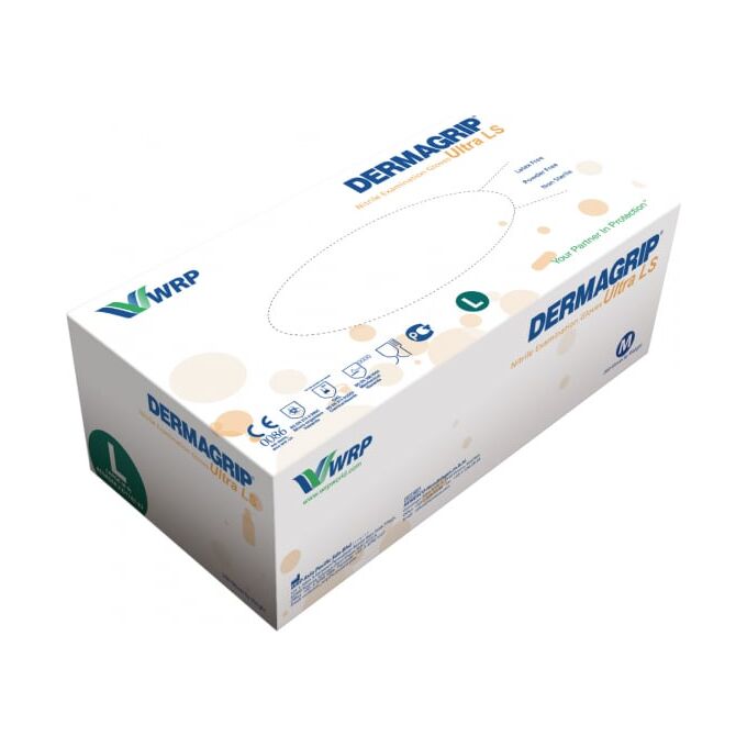 Смотровые перчатки DERMAGRIP ULTRA LS, нитрил, 200 штук, размер L CТ0000000549 используются в медицинской сфере.