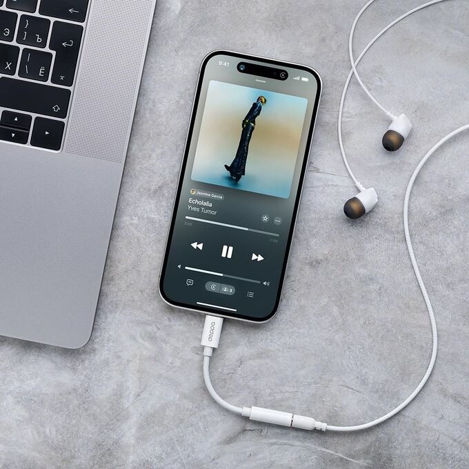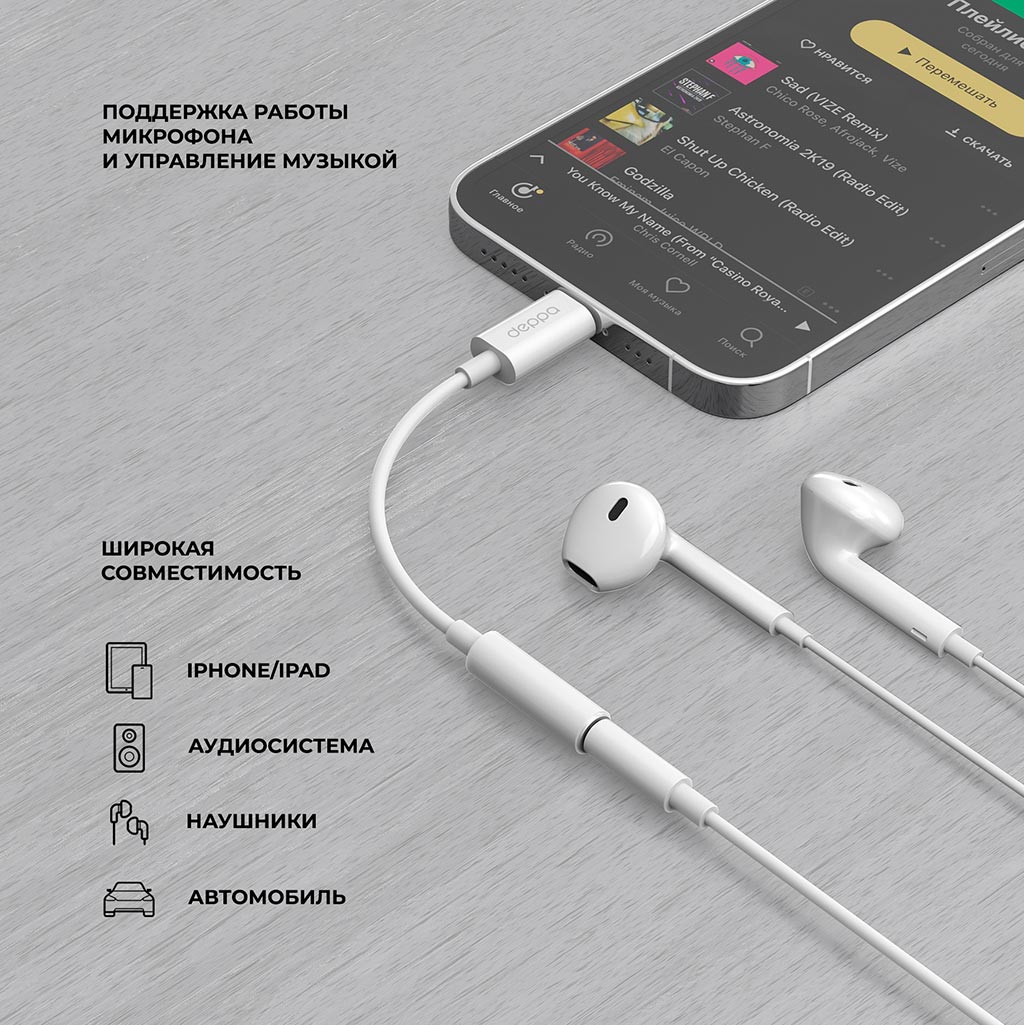 Переходник-адаптер Lightning 8-pin (M) - 3.5 mm jack (F), белый, Deppa