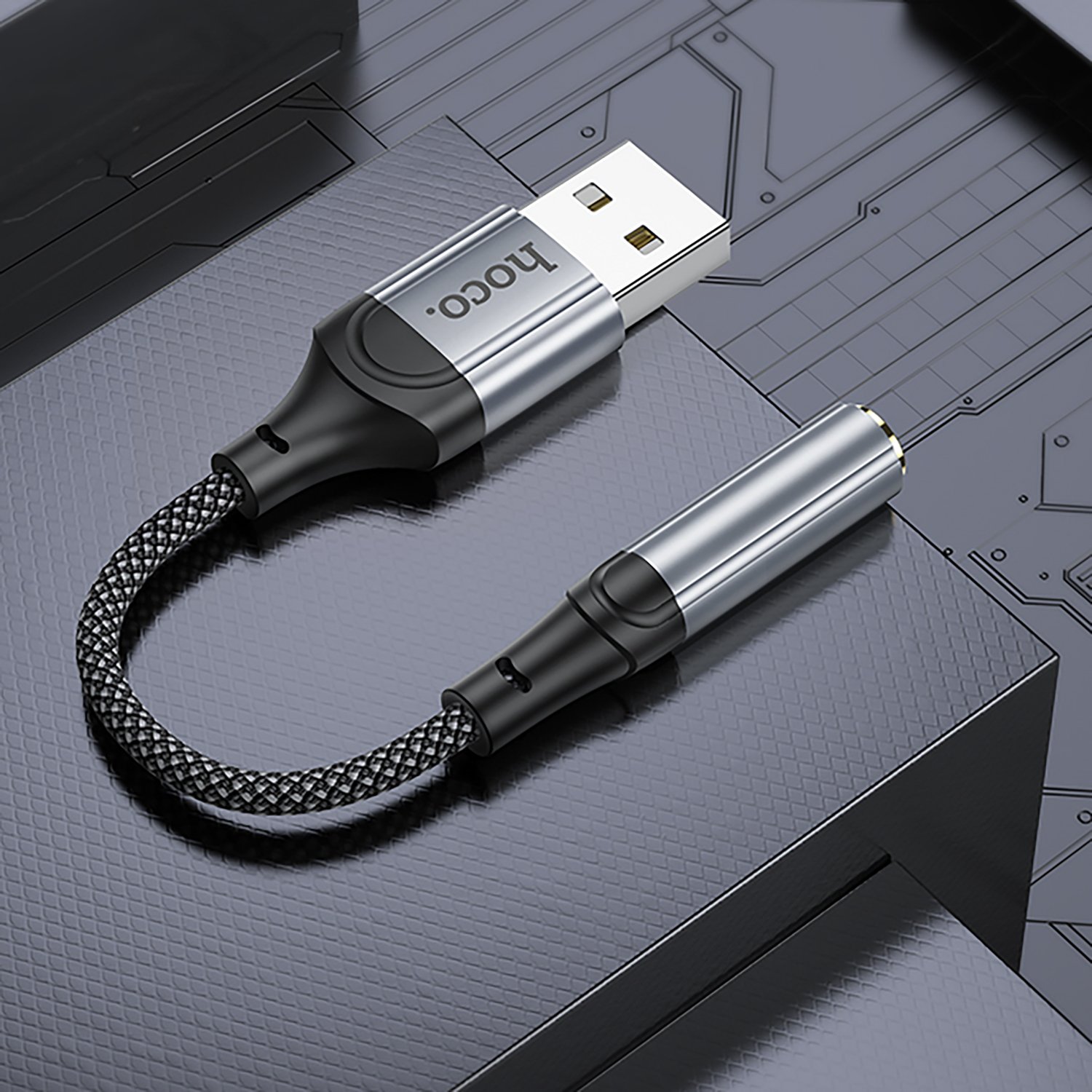 Переходник Jack 3.5 (м) - USB (п) Hoco LS36 Fresh 8см (black) (235055)