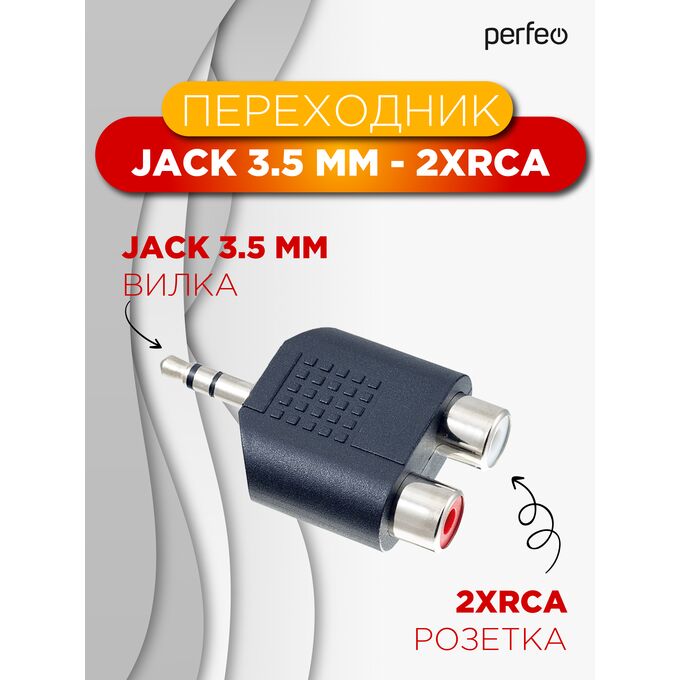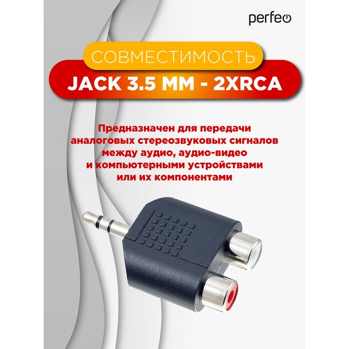 Переходник PERFEO Jack 3.5 мм (стерео) вилка - 2xRCA розетка (A7012)