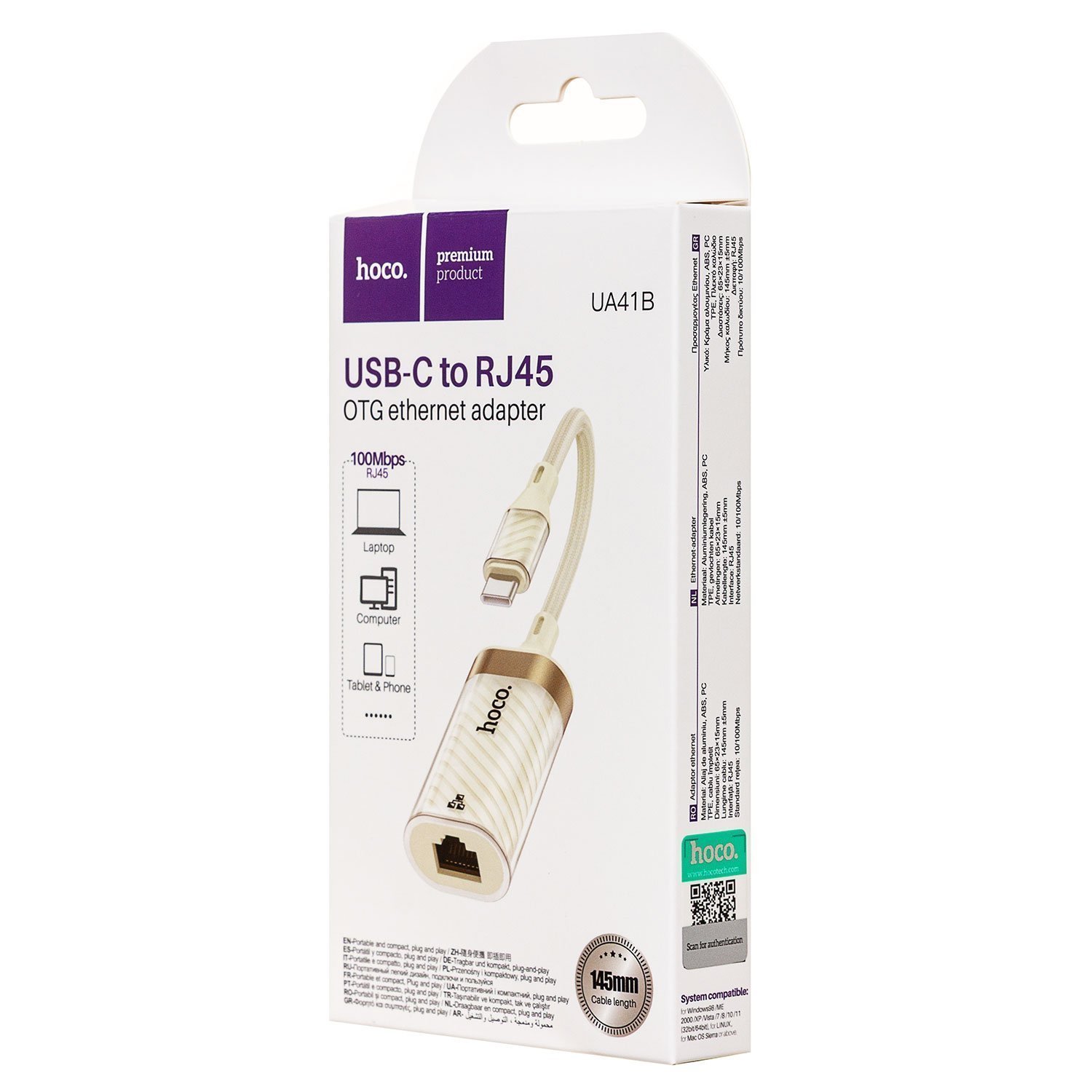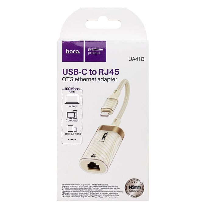 Переходник RJ45 (м) - Type-C (п) Hoco UA41B Crystal (apricot) (240956)
