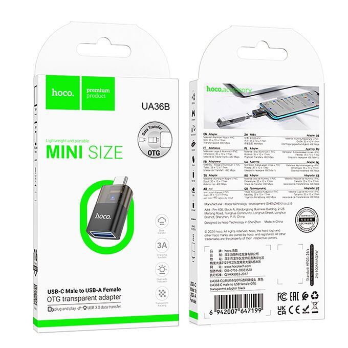 Переходник USB (м) - Type-C (п) Hoco UA36B (black) (240953)