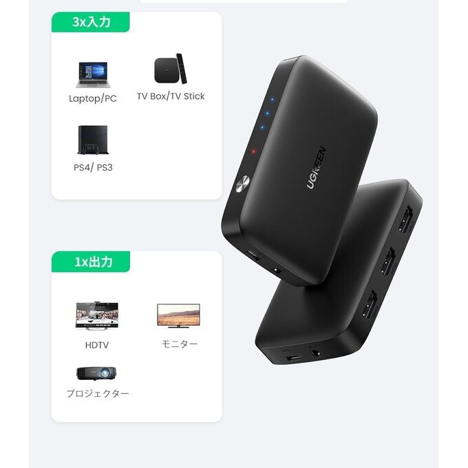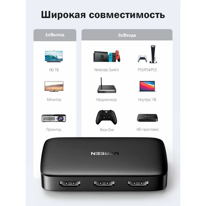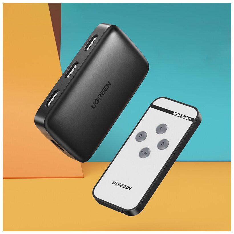 Переключатель UGREEN CM332 80125 HDMI Switcher 3 In 1 Out 4K@30HZ Grey
