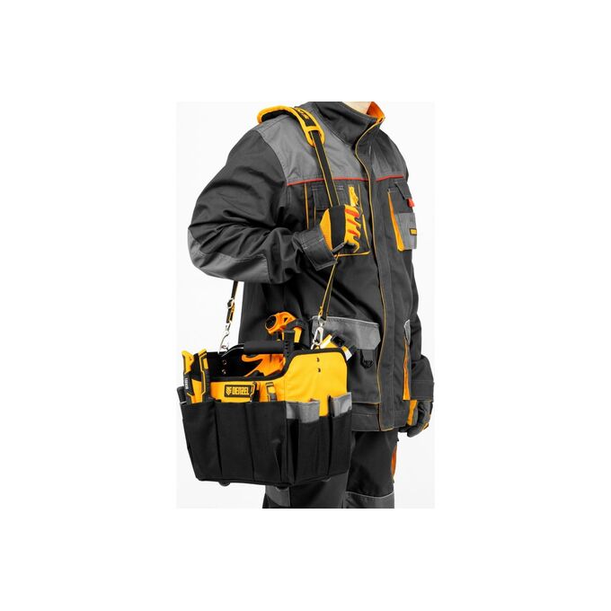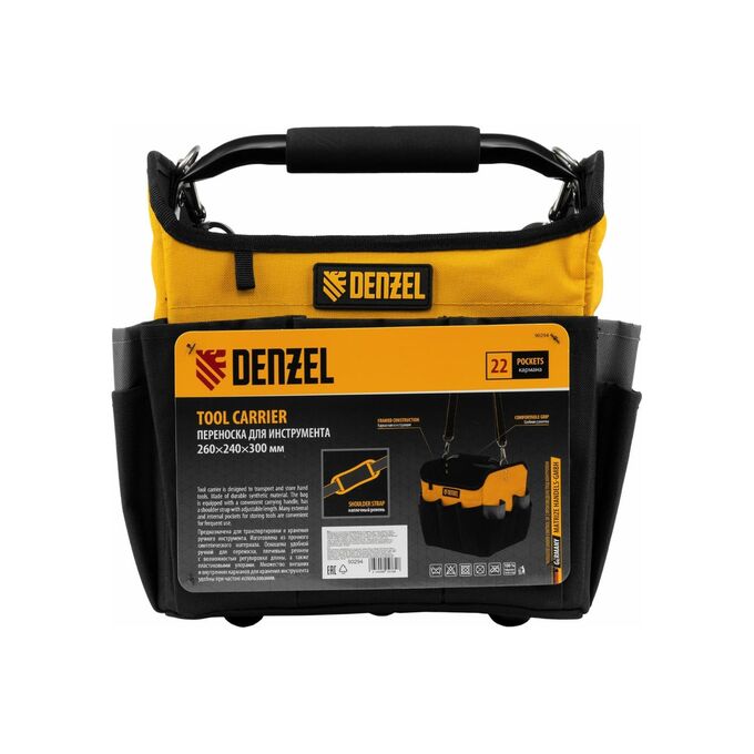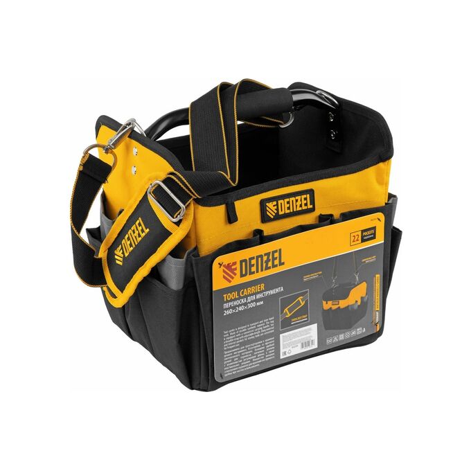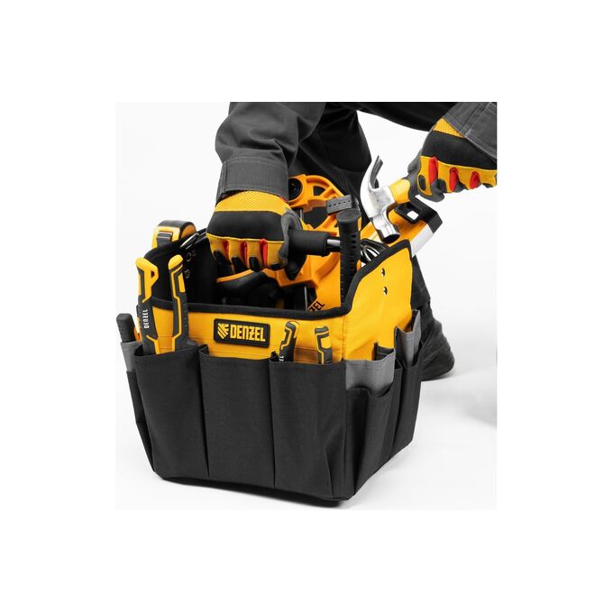 Переноска для инструментов Denzel 90294 260x240x300 мм, 22 кармана, наплечный ремень
