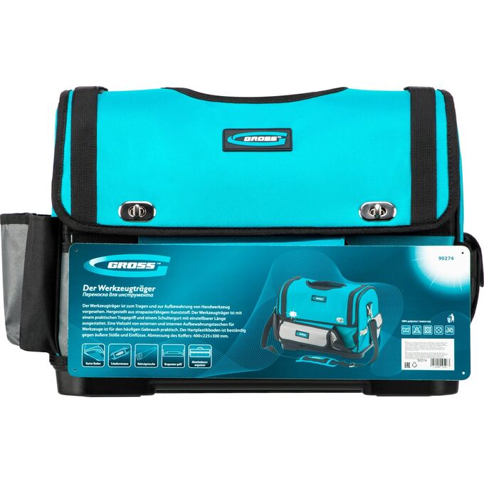 Переноска для инструментов GROSS 90274 400x225x300мм, пластиковое дно, наплечный ремень