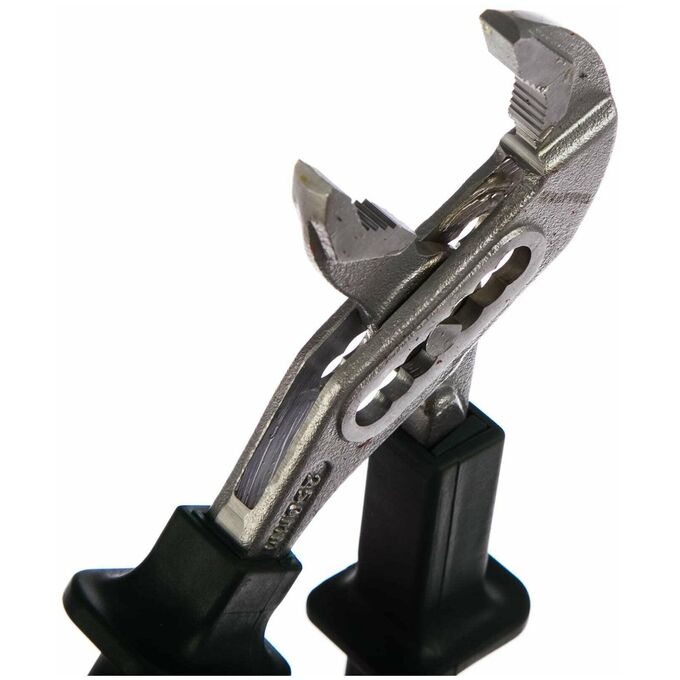 Ширина зева легко регулируется под любой размер крепежа. Инструмент представляет собой сочетание особопрочных хромомолибденовых рабочих частей и маслобензостойких чехлов с упорами для ладони для более удобного использования.
