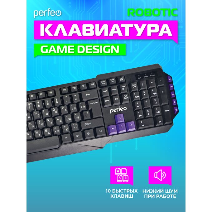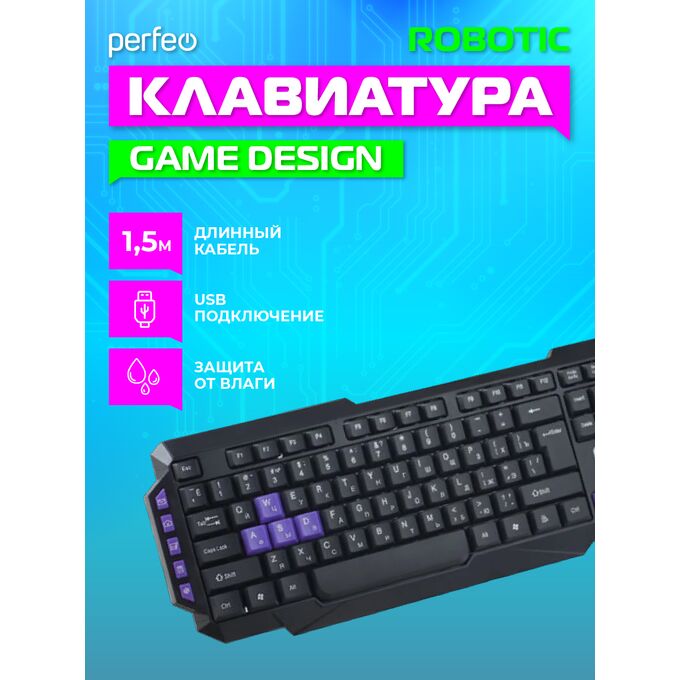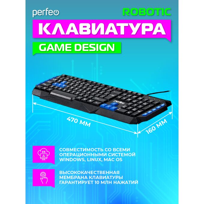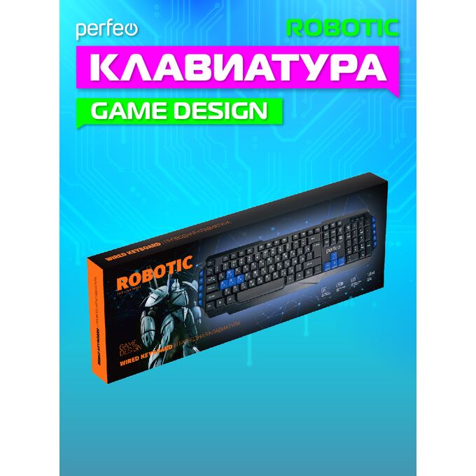 Клавиатура Perfeo "ROBOTIC" Multimedia, USB, чёрная, GAME DESIGN