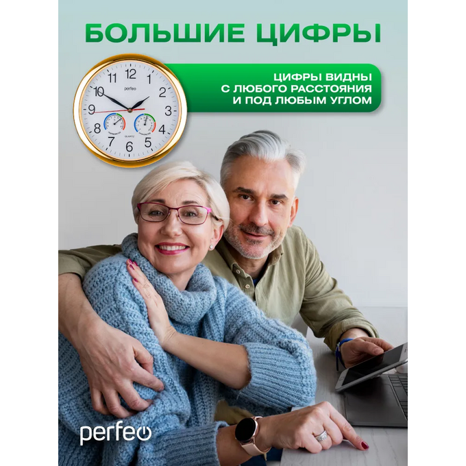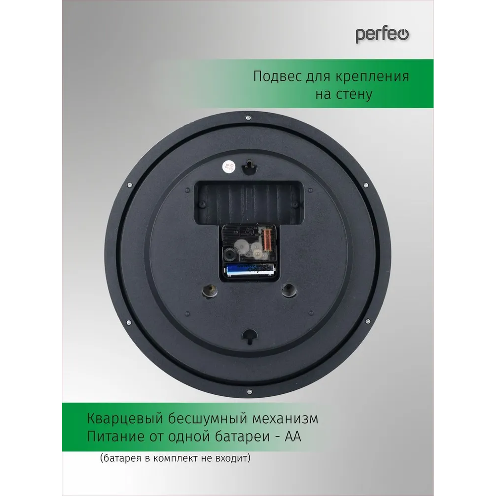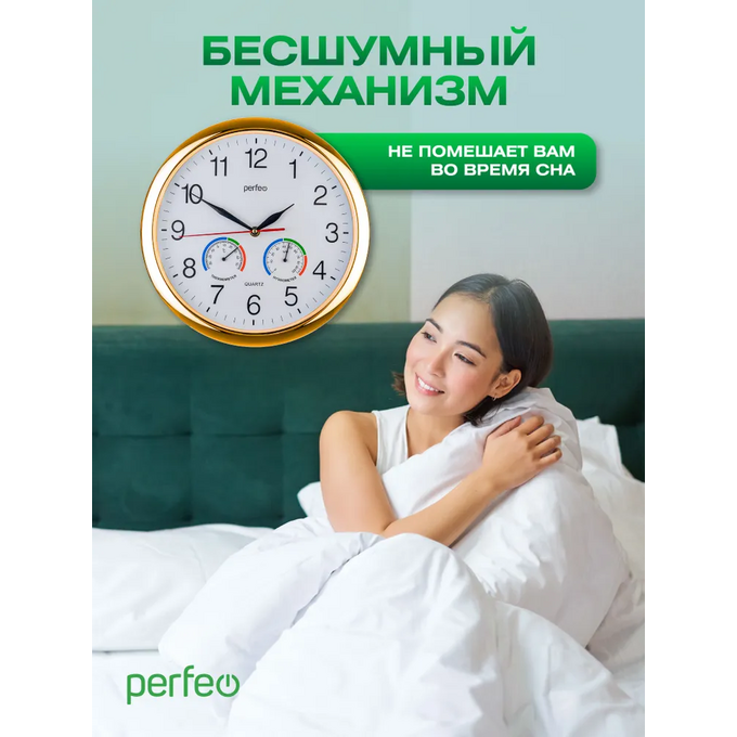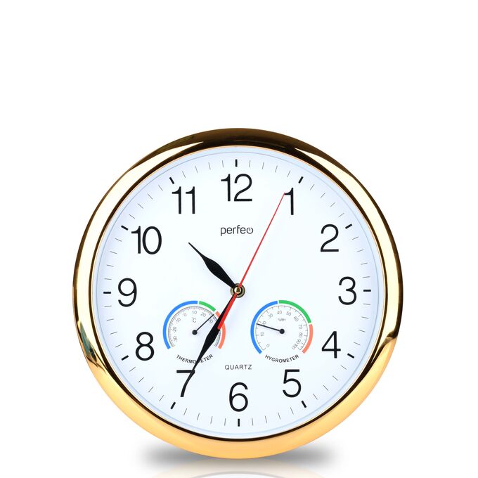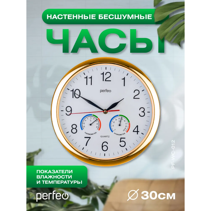 Настенные часы Perfeo "PF-WC-012", круглые д. 30 см, золотой корпус / белый циферблат