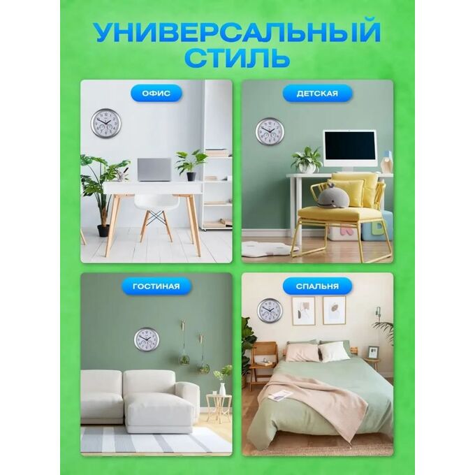Настенные часы бесшумные большие - это неотъемлемый атрибут в любом интерьере. Они могут стать эффектным украшением вашей кухни, большой гостиной, детской комнаты или спальни. Эти часы не только показывают текущее время, но и имеют множество других полезных функций. Наши часы имеют большой размер - диаметр 36 см, что позволяет легко видеть цифры и стрелки даже с дальнего расстояния. Благодаря своему стильному и современному дизайну, они станут необычным и оригинальным элементом вашего интерьера. Еще одним преимуществом этих часов является их бесшумность. Вы можете быть уверены, что они не будут беспокоить вас ночью своим тиканьем. Также они оснащены метеостанцией, которая позволяет отслеживать температуру и влажность в вашей комнате. Встроенный термометр и гигрометр отображают информацию на циферблате часов. Эти настенные часы подходят для любого помещения - будь то кухня, гостнная, спальня или детская комната. Благодаря своему декоративному виду, они станут отличным акцентом в вашем интерьере. Материалы высокого качества и надежный часовой механизм делают их долговечными. Не упустите шанс восхитить своих гостей оригинальными и стильными настенными часами. Они станут истинным украшением вашего дома и помогут контролировать время, температуру и влажность. Получите уникальные настенные часы уже сегодня и создайте комфорт и уют в своем доме! А так же, наши часы идеально подходят для подарка мужчинам на 23 февраля, женщинам для подарков на 8 марта или просто, для хорошего повода, подарка на день рождения.