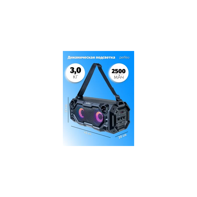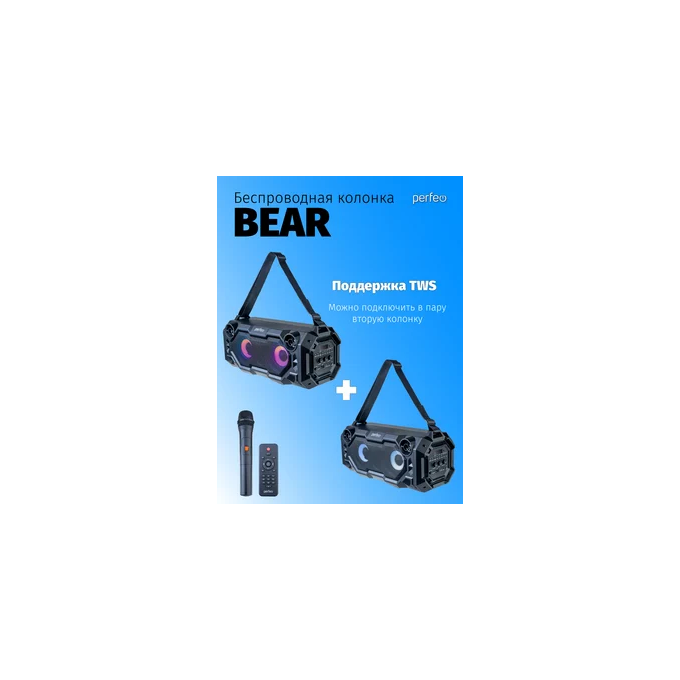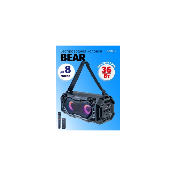 Портативная акустическая система Perfeo ”BEAR” 36W EQ, беспроводной микрофон в комплекте, MP3 USB-microSD, AUX, FM, JACK, TWS
