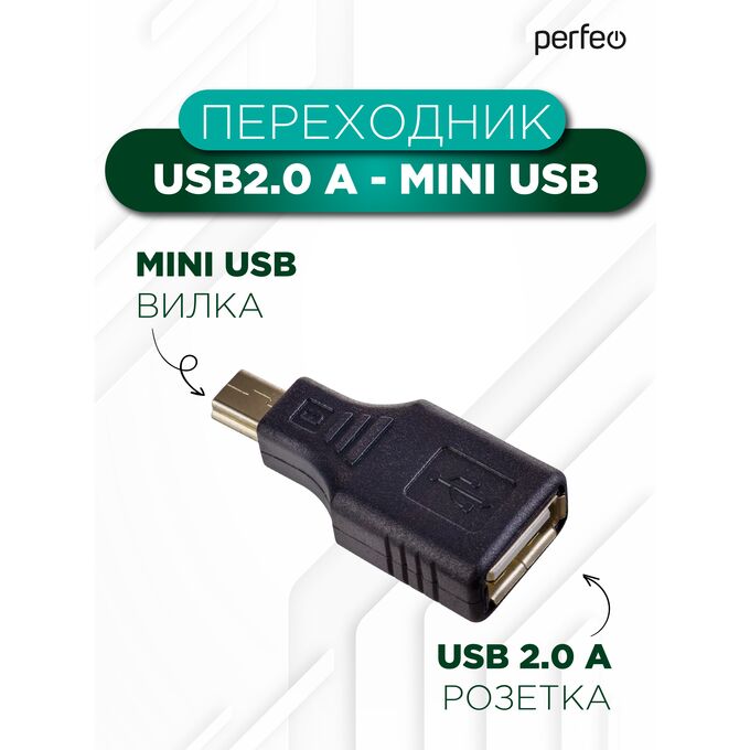 PERFEO Переходник USB2.0 A розетка - Mini USB вилка (A7016)