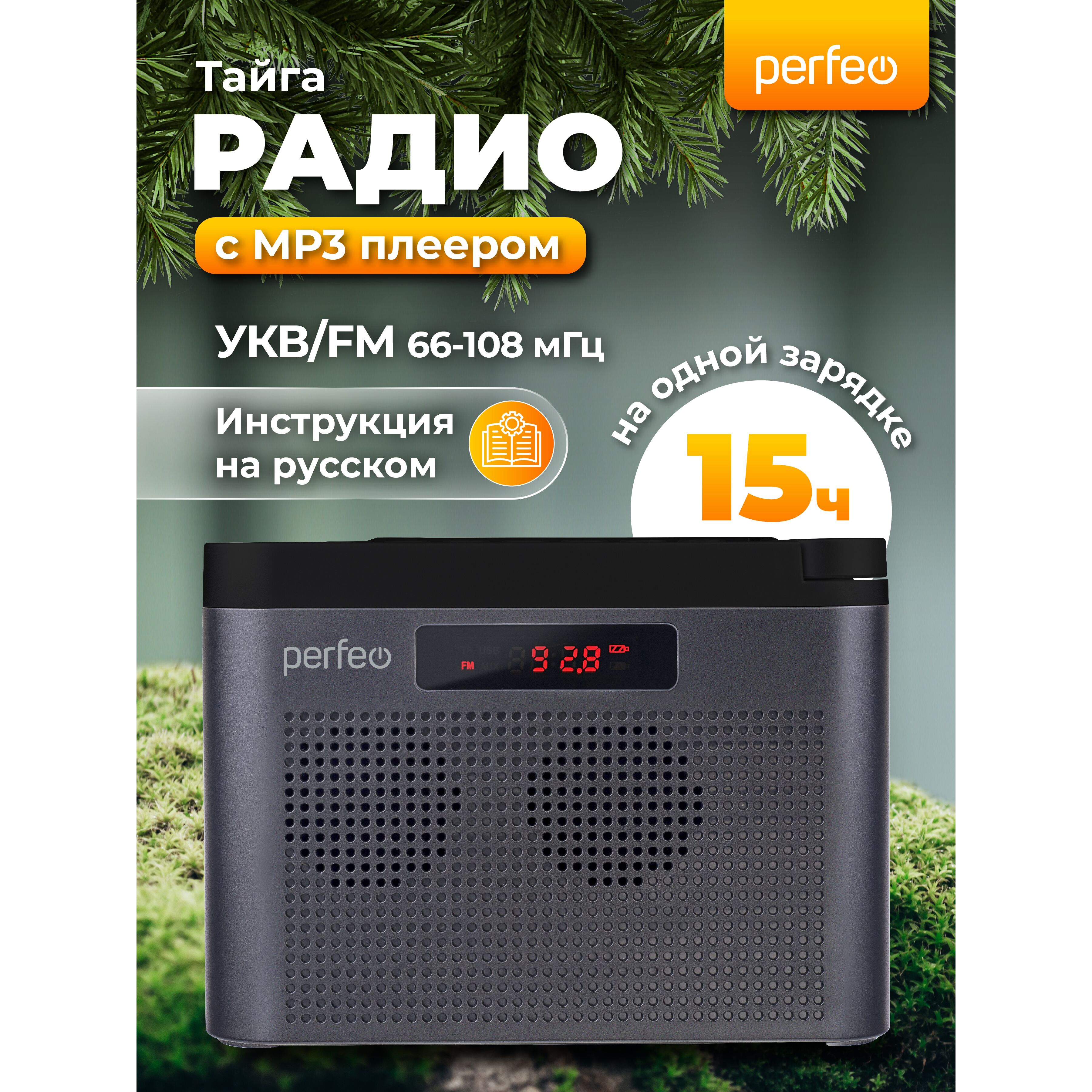 Цифровой радиоприемник Perfeo ТАЙГА FM+ 66-108МГц/ MP3/ встроенный аккум, USB/ Серый (I70GR)