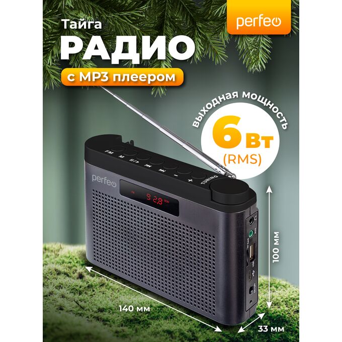 Портативный радиоприёмник УКВ/FM с разъемами USB и microSD. Perfeo "Тайга" создан на базе уже проверенного тюнера модели Perfeo SV922. Радиоприемник в классическом корпусе имеет стильный внешний вид, удобное колесико-регулятор радиоволны и кнопки управления на верхней грани устройства. Поворотная телескопическая антенна принимает сигнал в 2-х самых популярных диапазонах (УКВ и FM), также предусмотрена возможность выборочного запоминания 10 станций. Есть встроенный