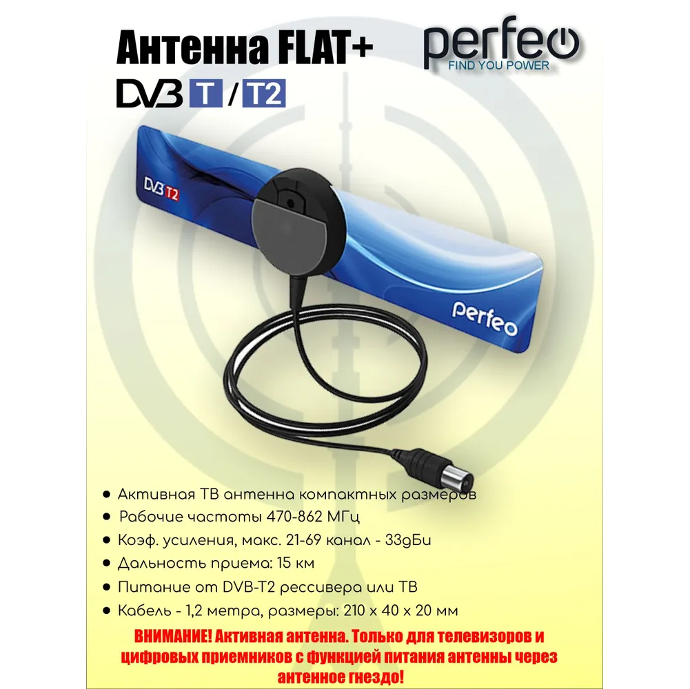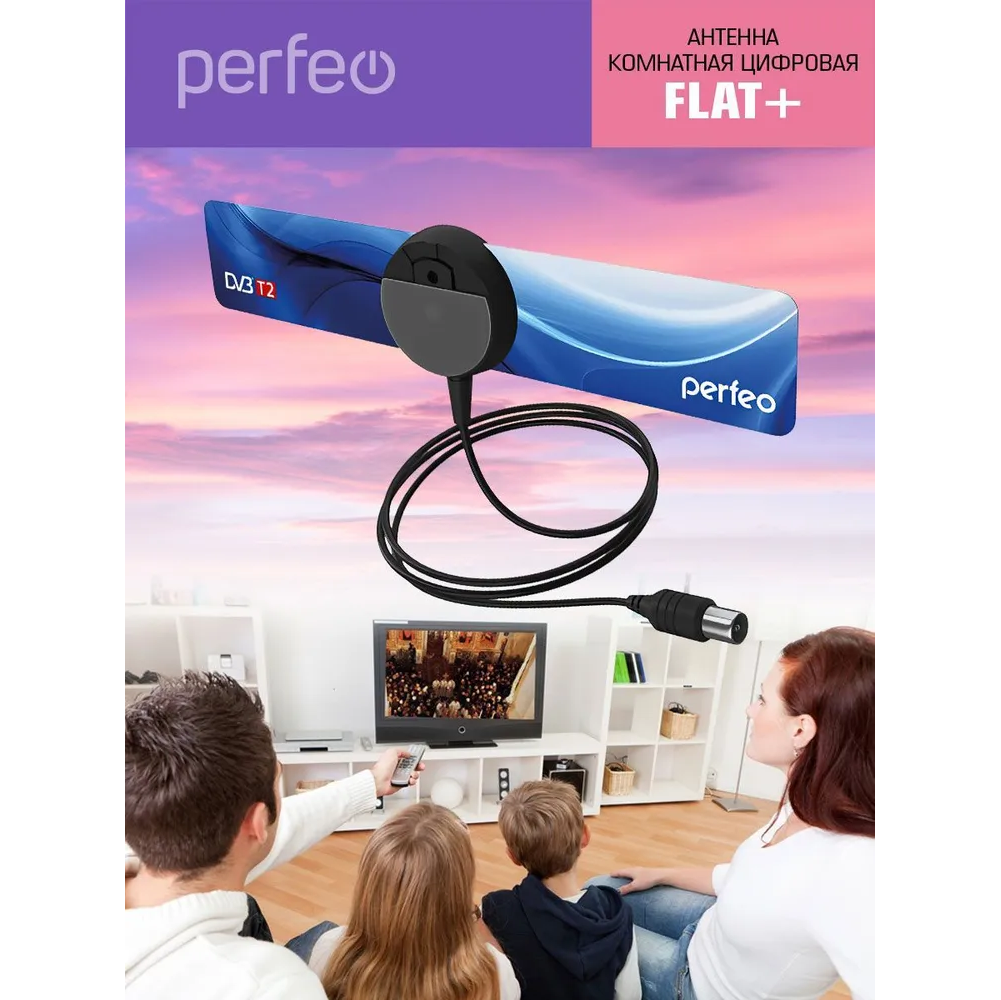 Антенна ТВ Perfeo "FLAT+", активная, встр. усилитель, DVB-T2 (PF-TV2169)(BAS-5111), (Арт. PF_4503)