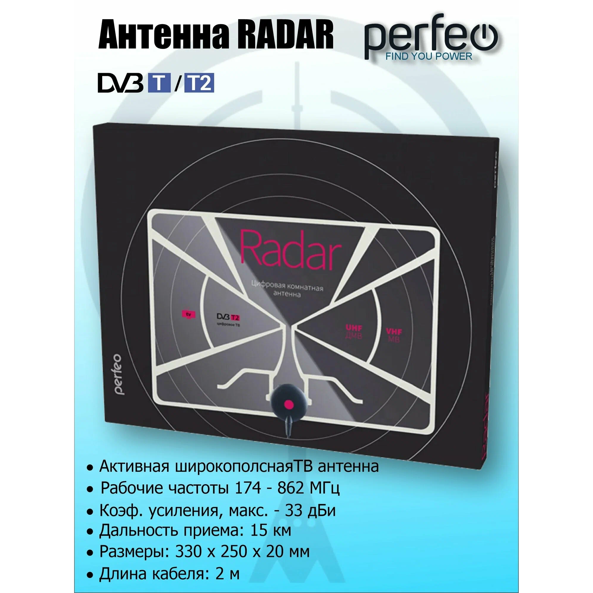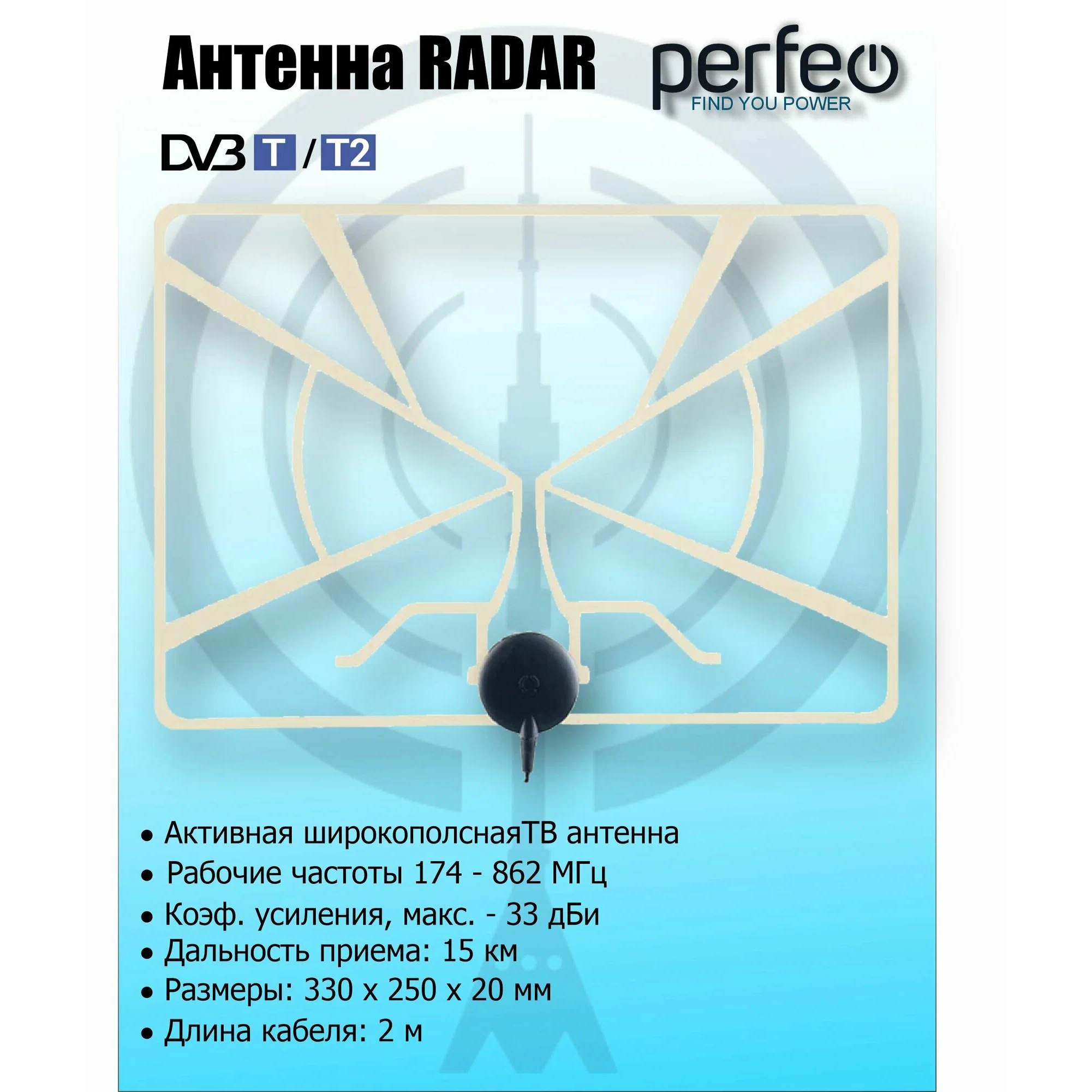 Антенна ТВ Perfeo "RADAR", активная, встр. усилитель, питание от ресивера 5V, DVB-T2 (BAS-5324), (Арт. PF_A4213)