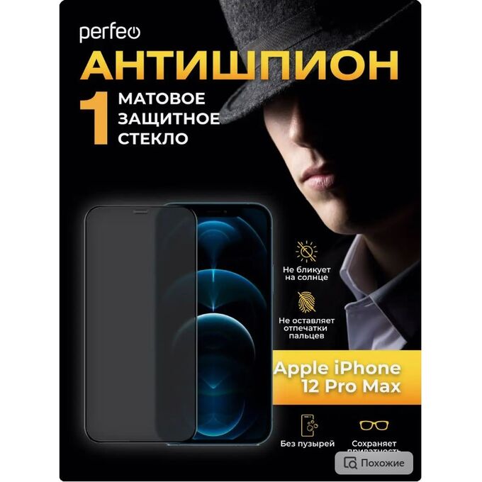Perfeo защитное стекло Матовое Антишпион Apple iPhone 12 Pro Max (6.7") черный