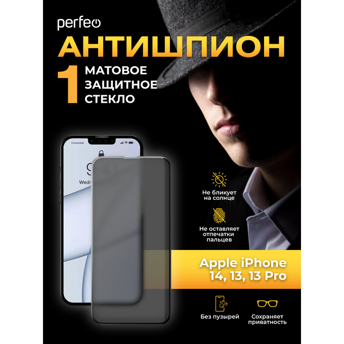 Perfeo защитное стекло Матовое Антишпион Apple iPhone 14 Pro черный