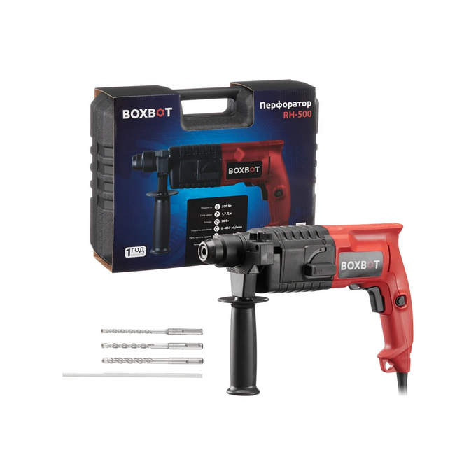 Электрический перфоратор Boxbot RH-500 — надёжный инструмент с двумя режимами работы: сверление и сверление с ударом (бурение).