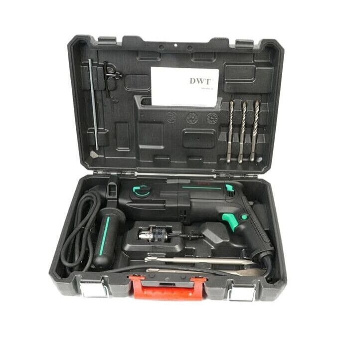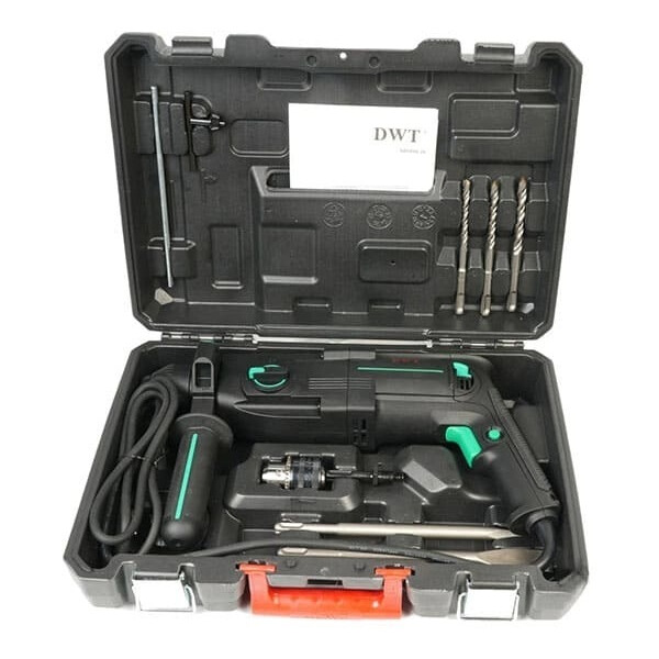 Адаптер, Документация, Зажимной ключ, Зубило пикообразное, Зубило плоское, Патрон, Пылеуловитель, Сверла 3шт.