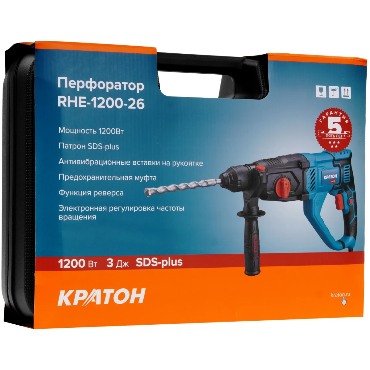 Перфоратор Кратон RHE-1200-26 патрон SDS-plus уд. 3Дж 1200Вт (кейс в комплекте)
