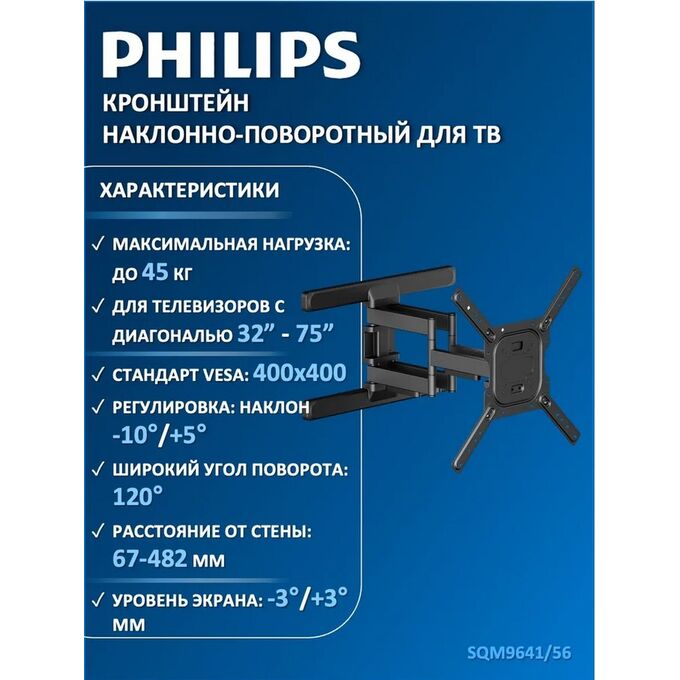 Кронштейн для ТВ 32"-75", Max 45кг, расстояние от стены 67-482мм
