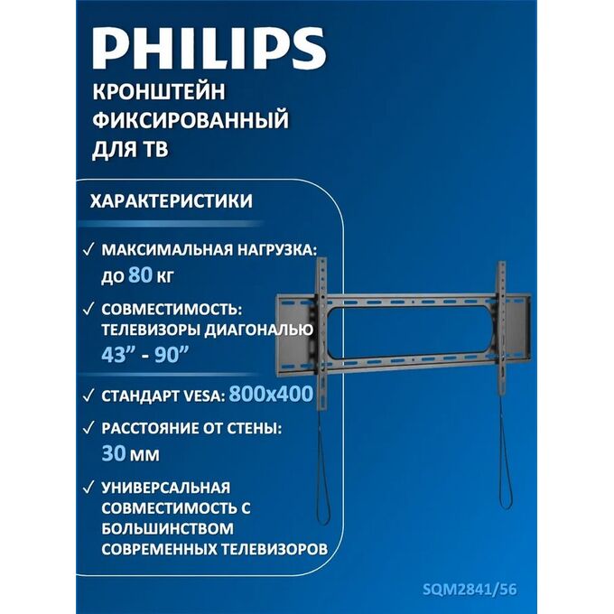 Кронштейн для ТВ 43"-90", Max 80кг, расстояние от стены 30мм