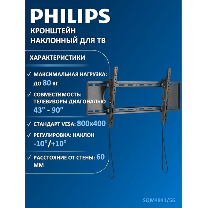 Кронштейн для ТВ 43"-90", Max 80кг, расстояние от стены 60мм