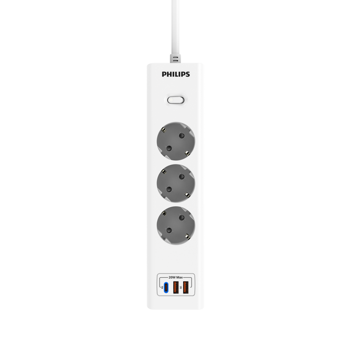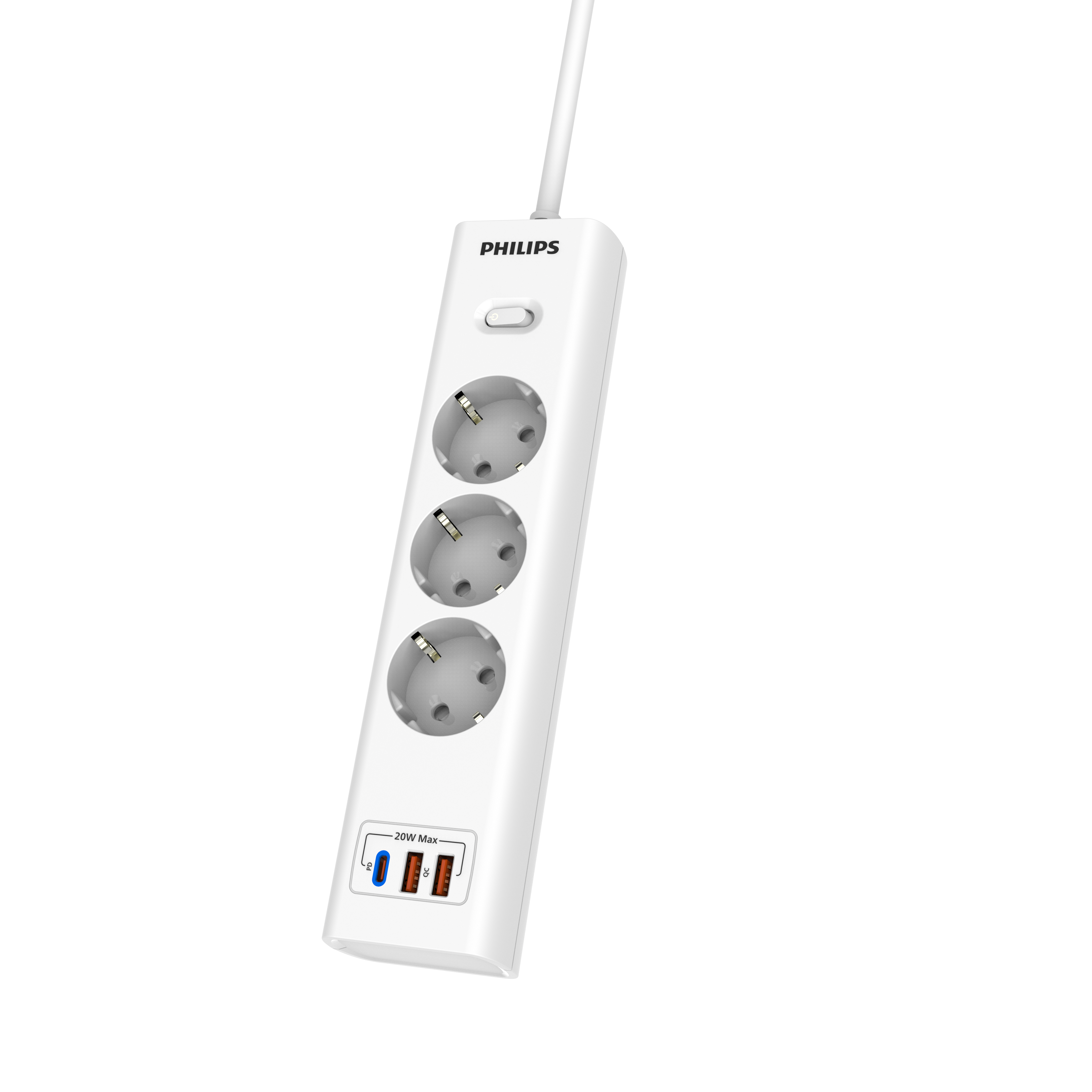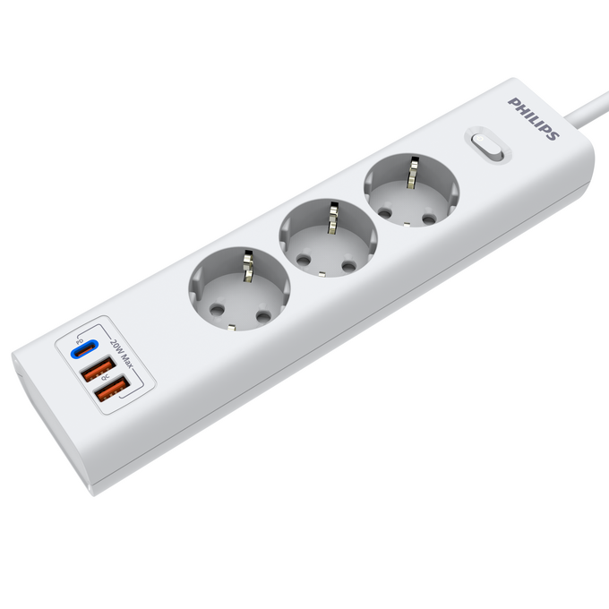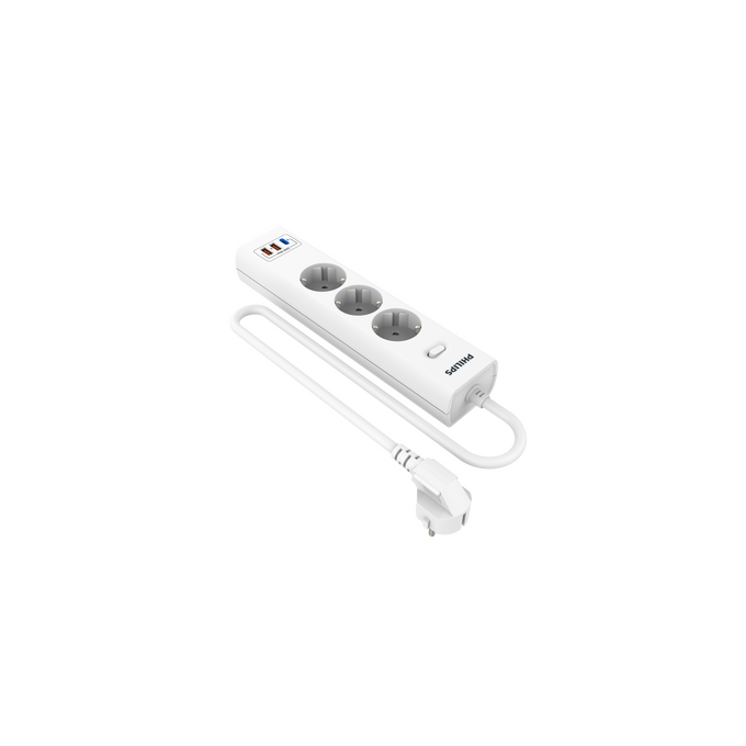 Philips сетевой фильтр 3 Розетки с USB PD/QC3.0 (5/9/12В) 20Вт кабель - 3M белый