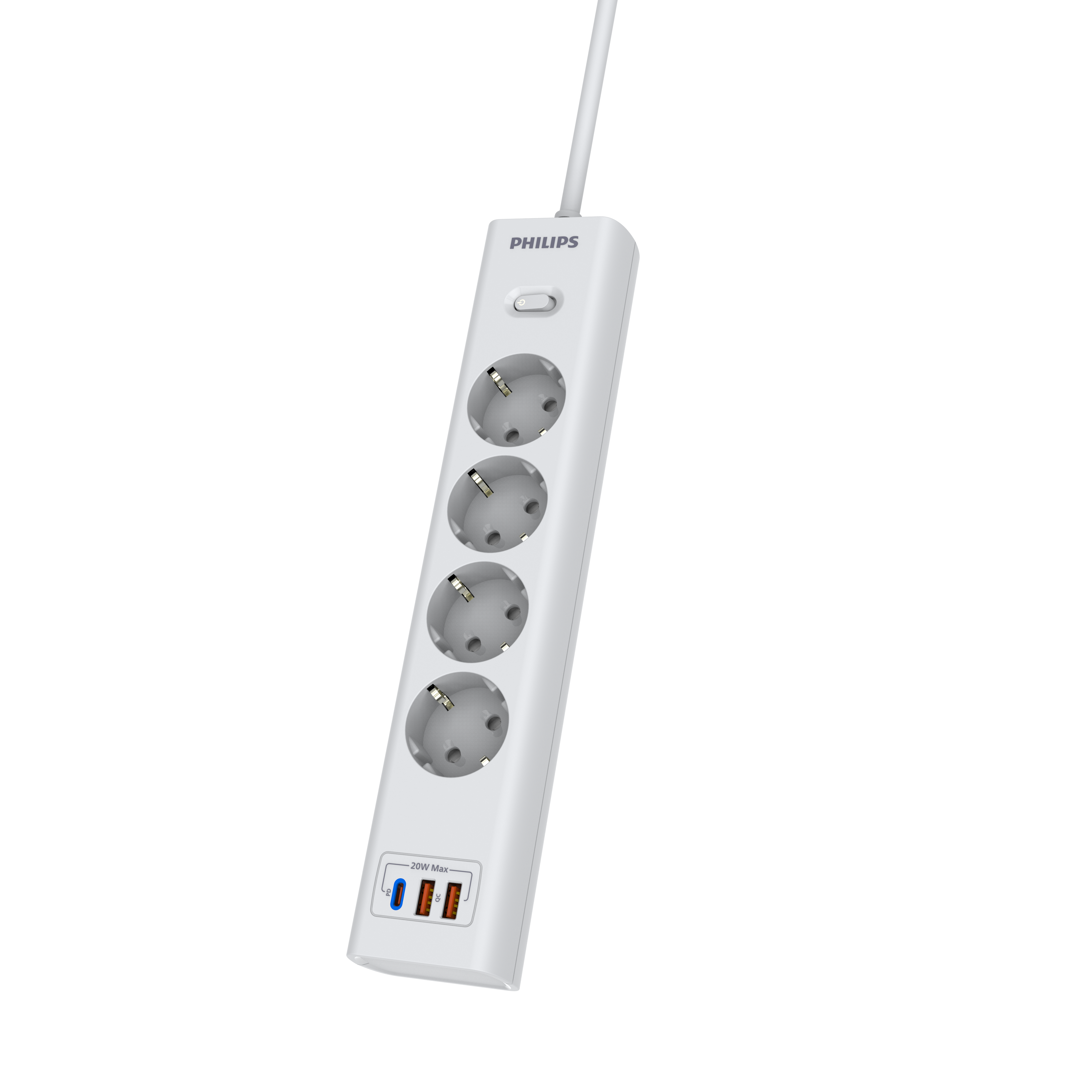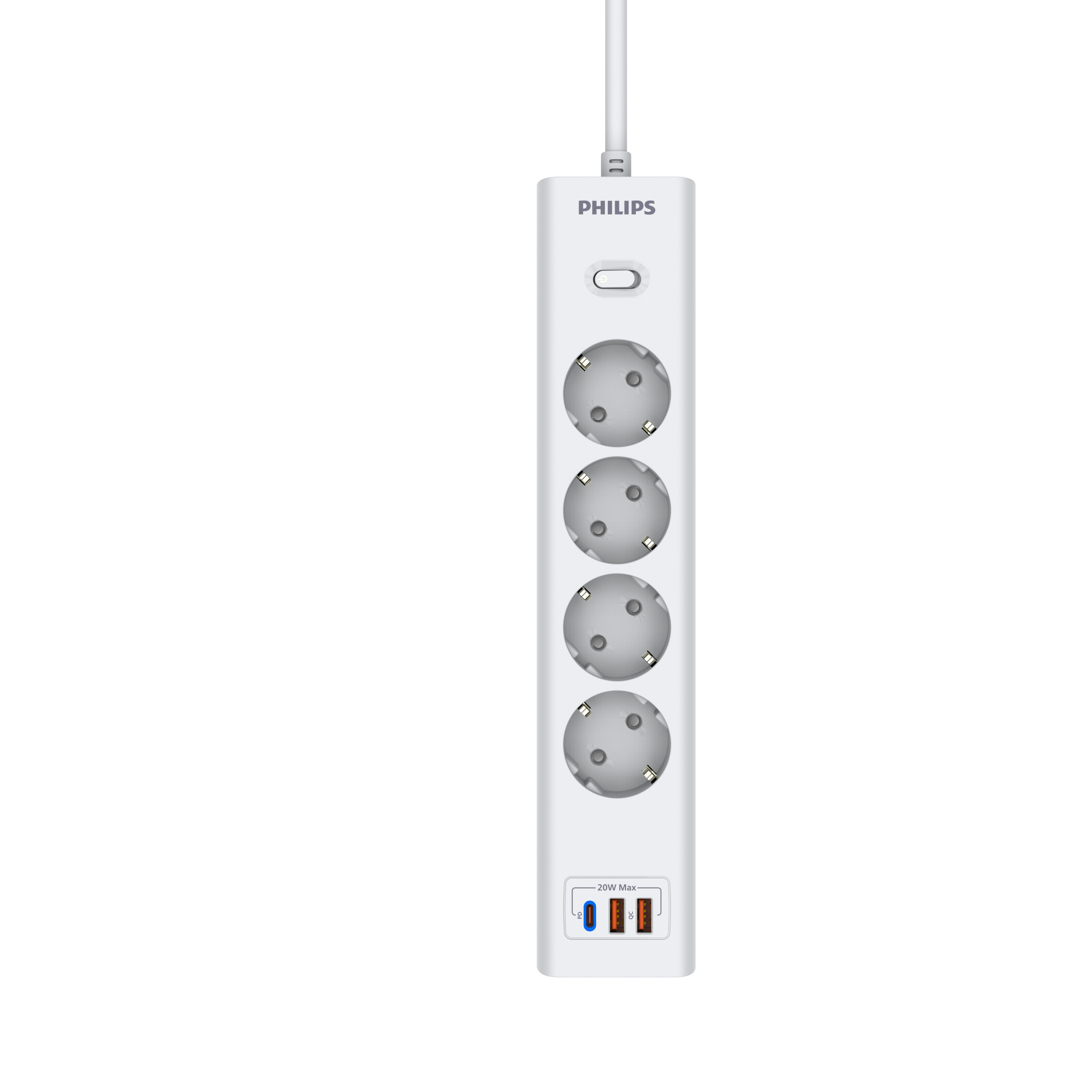 Philips сетевой фильтр 4 Розетки с USB PD/QC3.0 (5/9/12В) 20Вт кабель - 5M белый