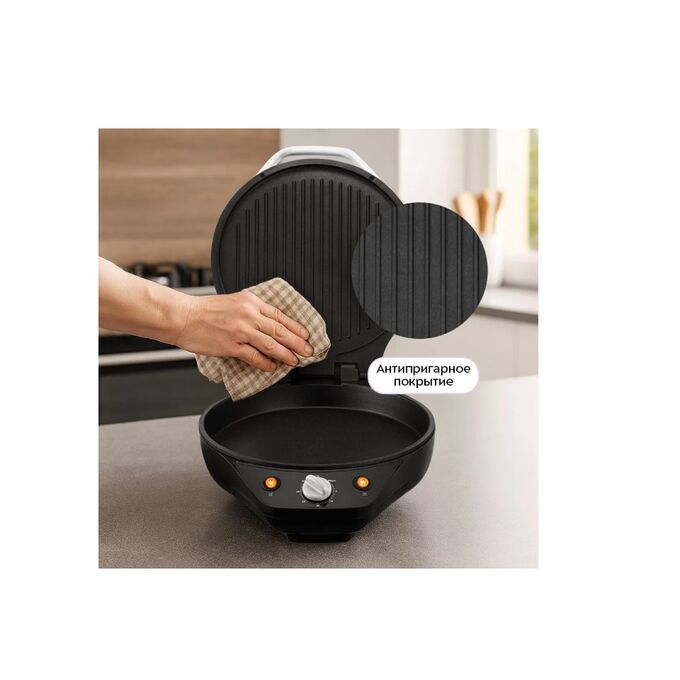 Нагревательные элементы на обеих панелях обеспечивают быстрый и равномерный нагрев, предотвращая подгорание и равномерное пропекание блюд. Также предусмотрен режим работы только с нижней или верхней панелью для разных блюд.