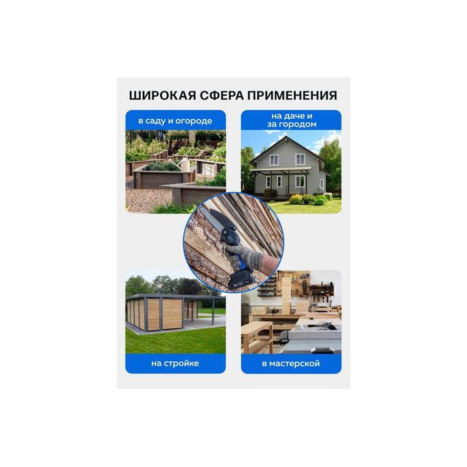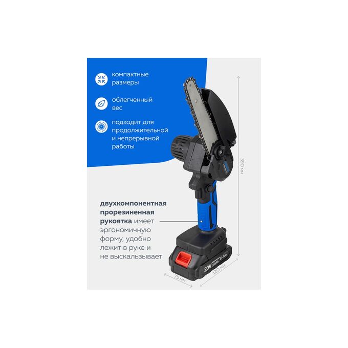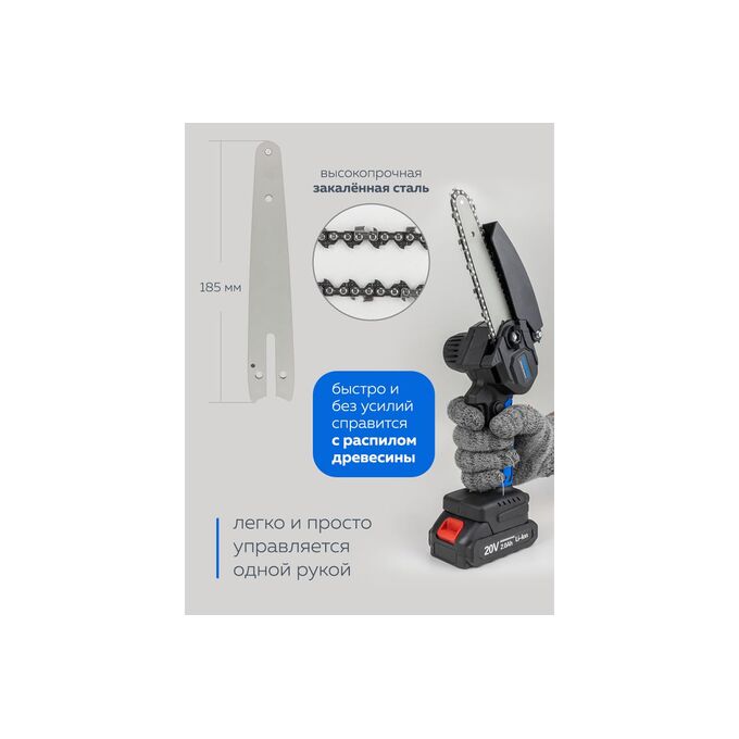 Цепная аккумуляторная пила F-WT03156 незаменима при работе в мастерской или в саду для распиливания различных материалов.