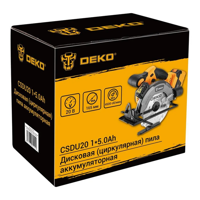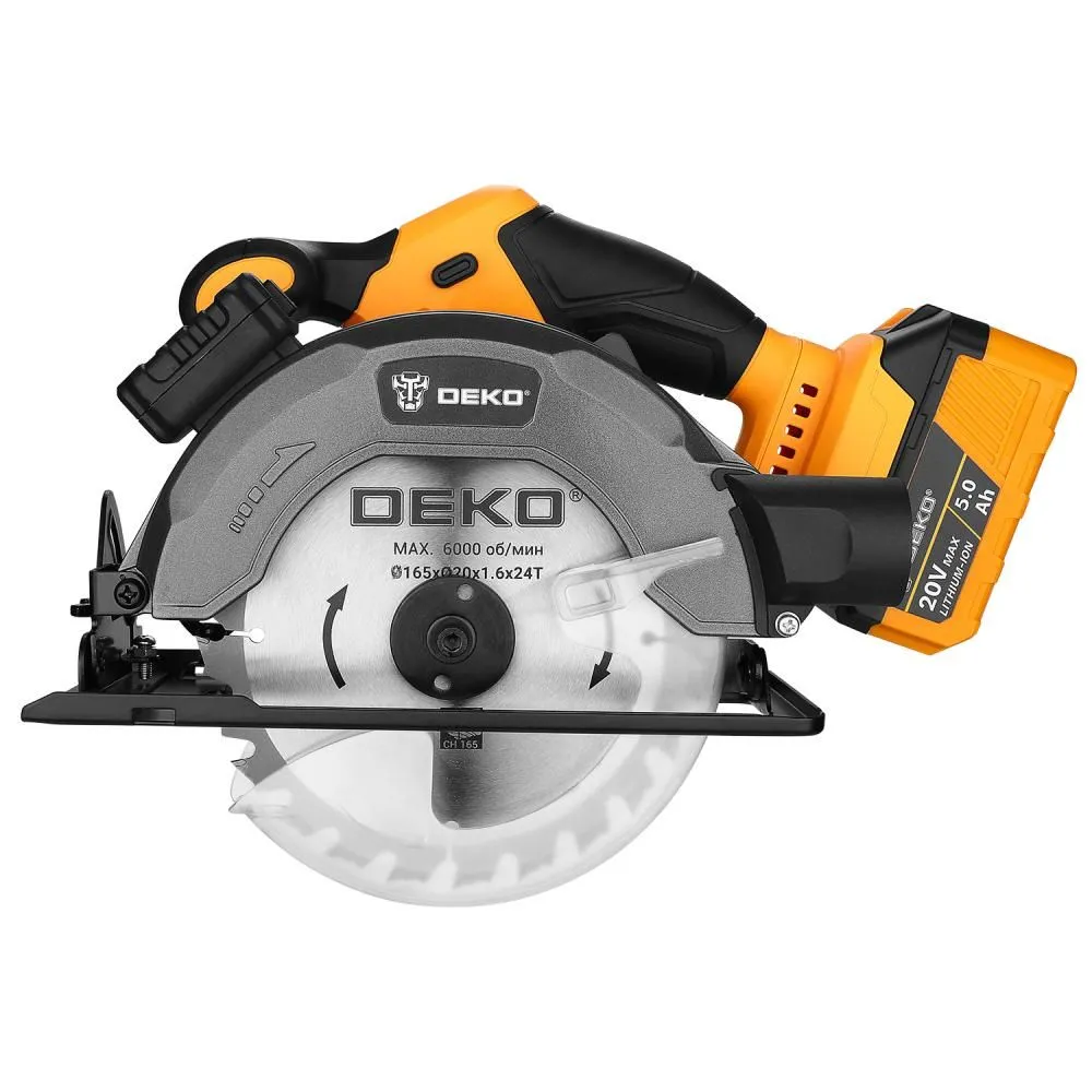 Дисковая (циркулярная) пила аккумуляторная DEKO CSDU20 1*5.0Ah используется для создания прямолинейных пропилов в древесине и пластмассе. Возможна регулировка глубины резания и угла наклона. Наличие патрубка для подключения пылесоса поможет обеспечить чистоту рабочего места.