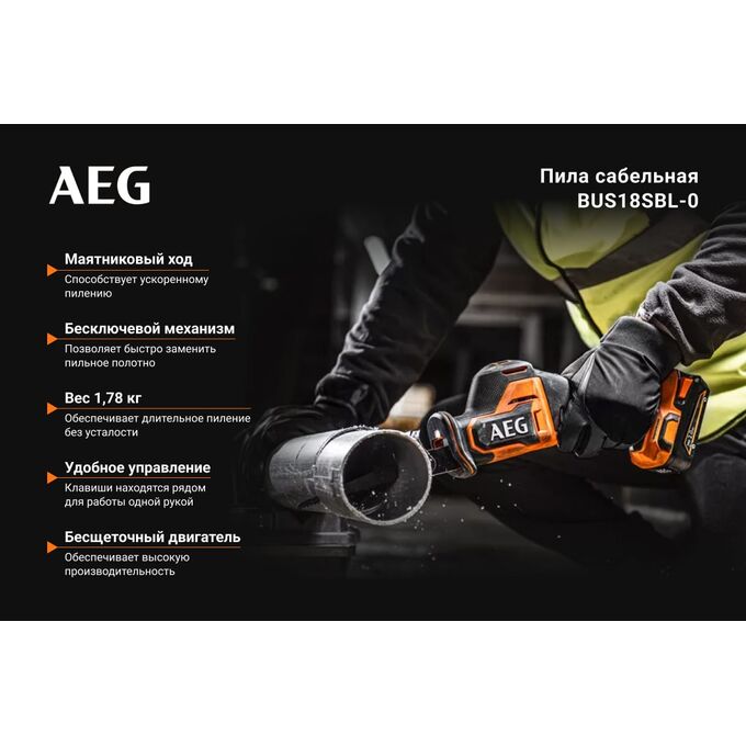 Пила сабельная AEG BUS18SBL-0 (4935479662) без АКБ и ЗУ